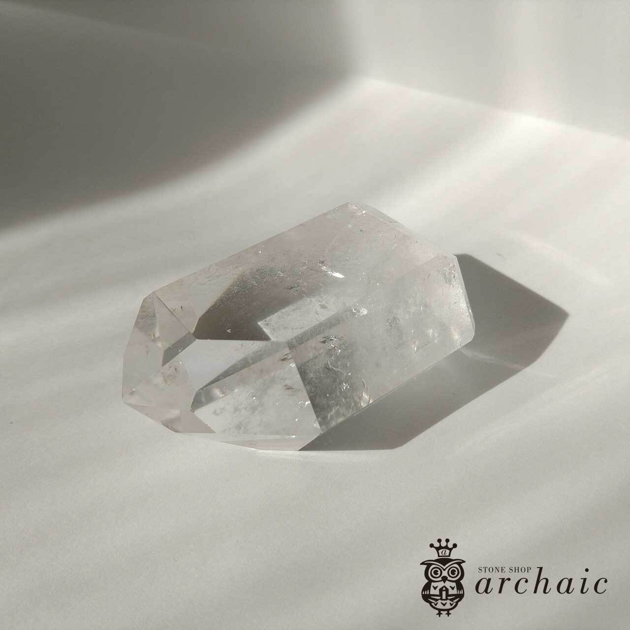 水晶の中にもう一つ小さな水晶のポイントがあるような、クォーツインクォーツのポイントです。高い透明度と、キリッと鋭いフォルム、ずっしりしたボリュームの美しい水晶ですよ。