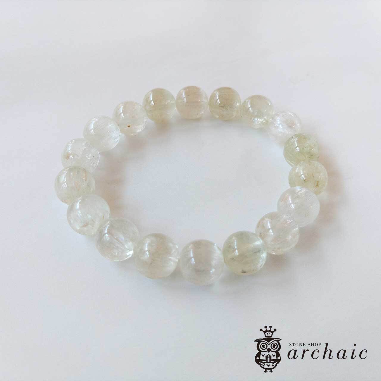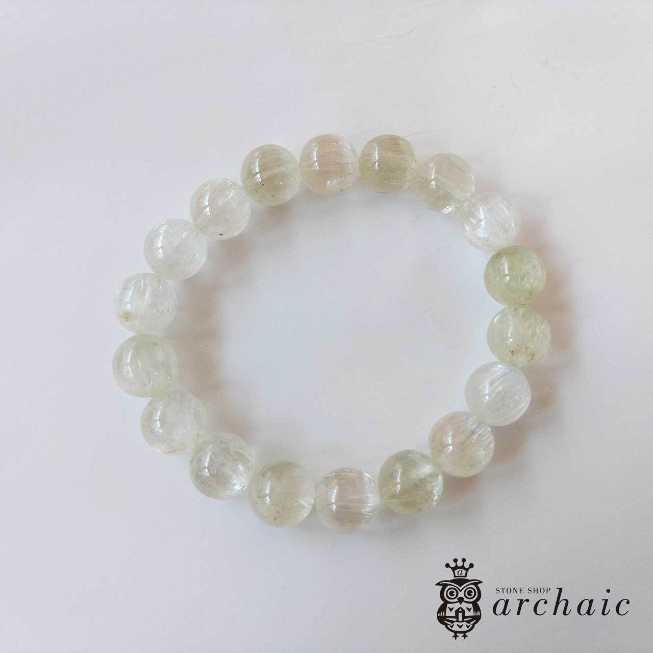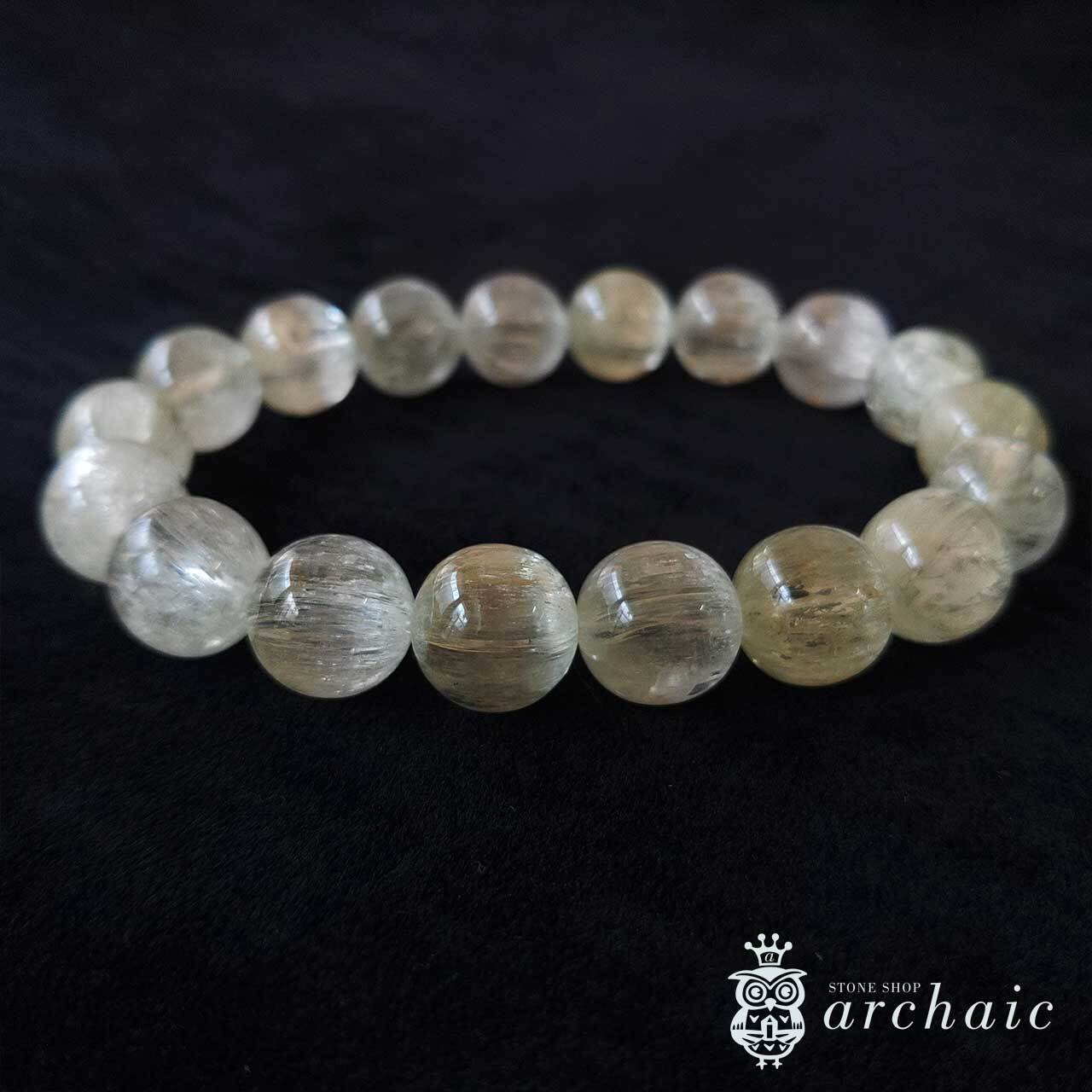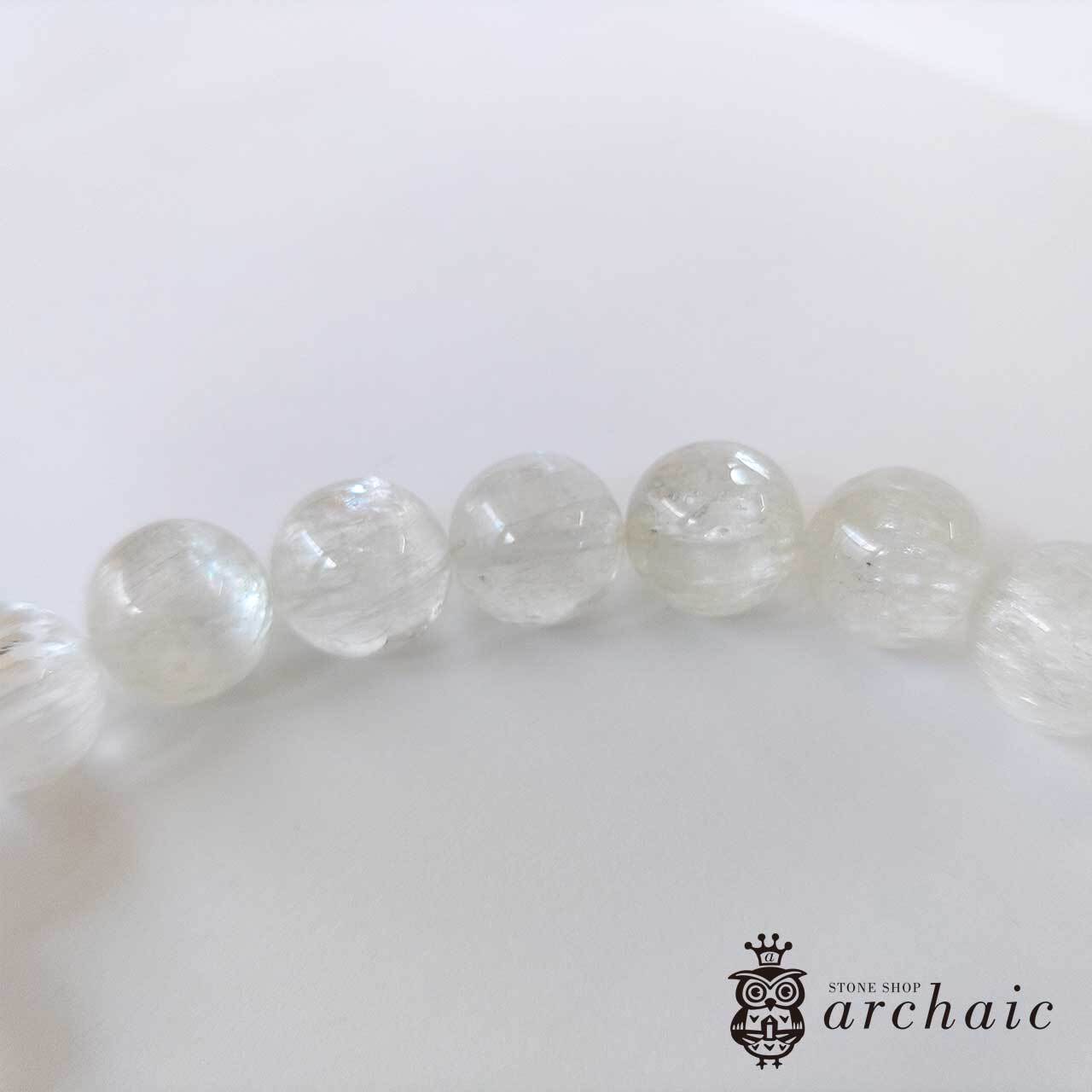 角度によって縦に筋状の光がきらめく大粒のトリフェーンのブレスレットです。