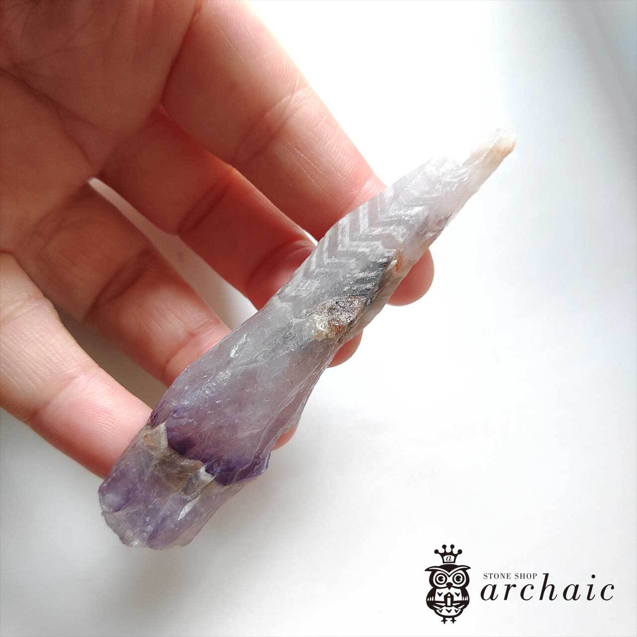 細長ーいシェブロンアメジストの原石です。