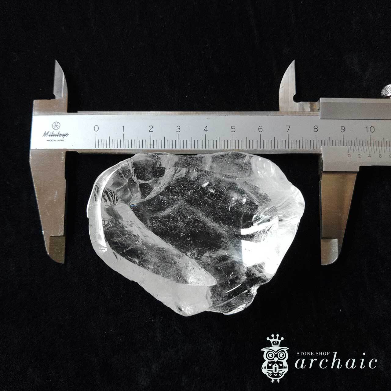 マダガスカル産水晶の原石を丸くなめらかに磨き、外側は原石の粗削りな風合いを残したままにしています。