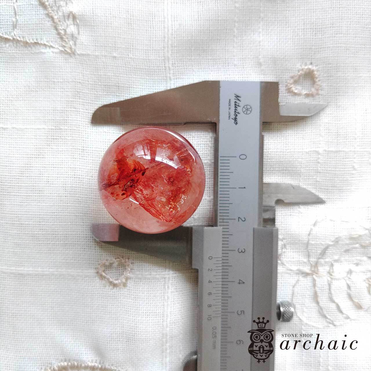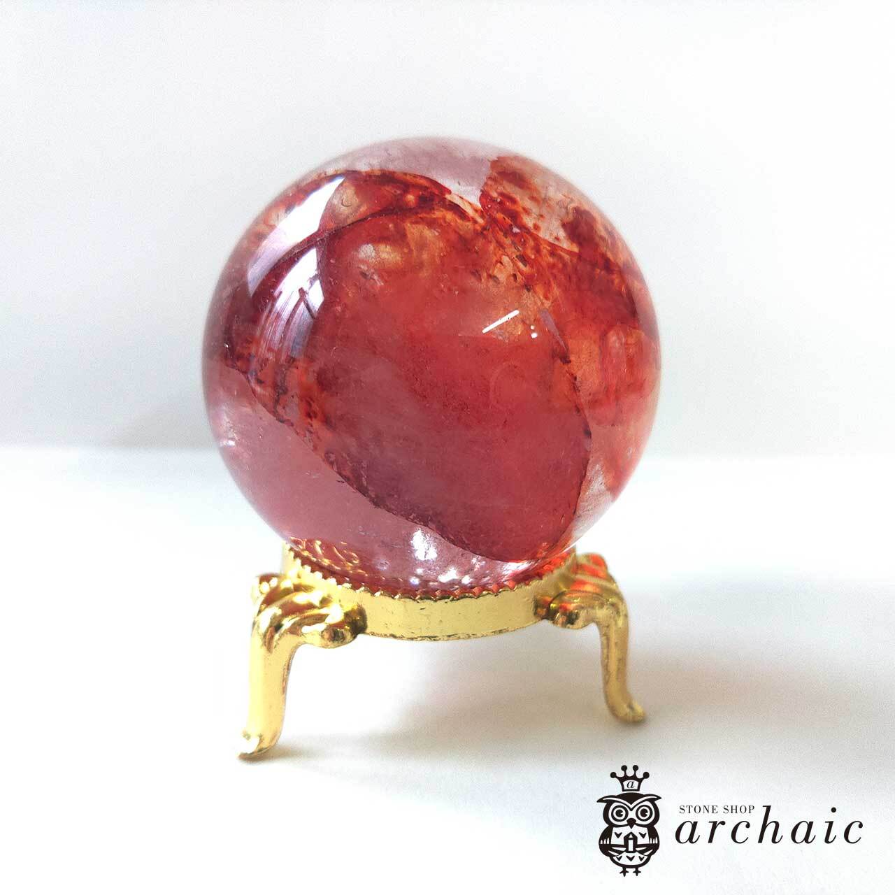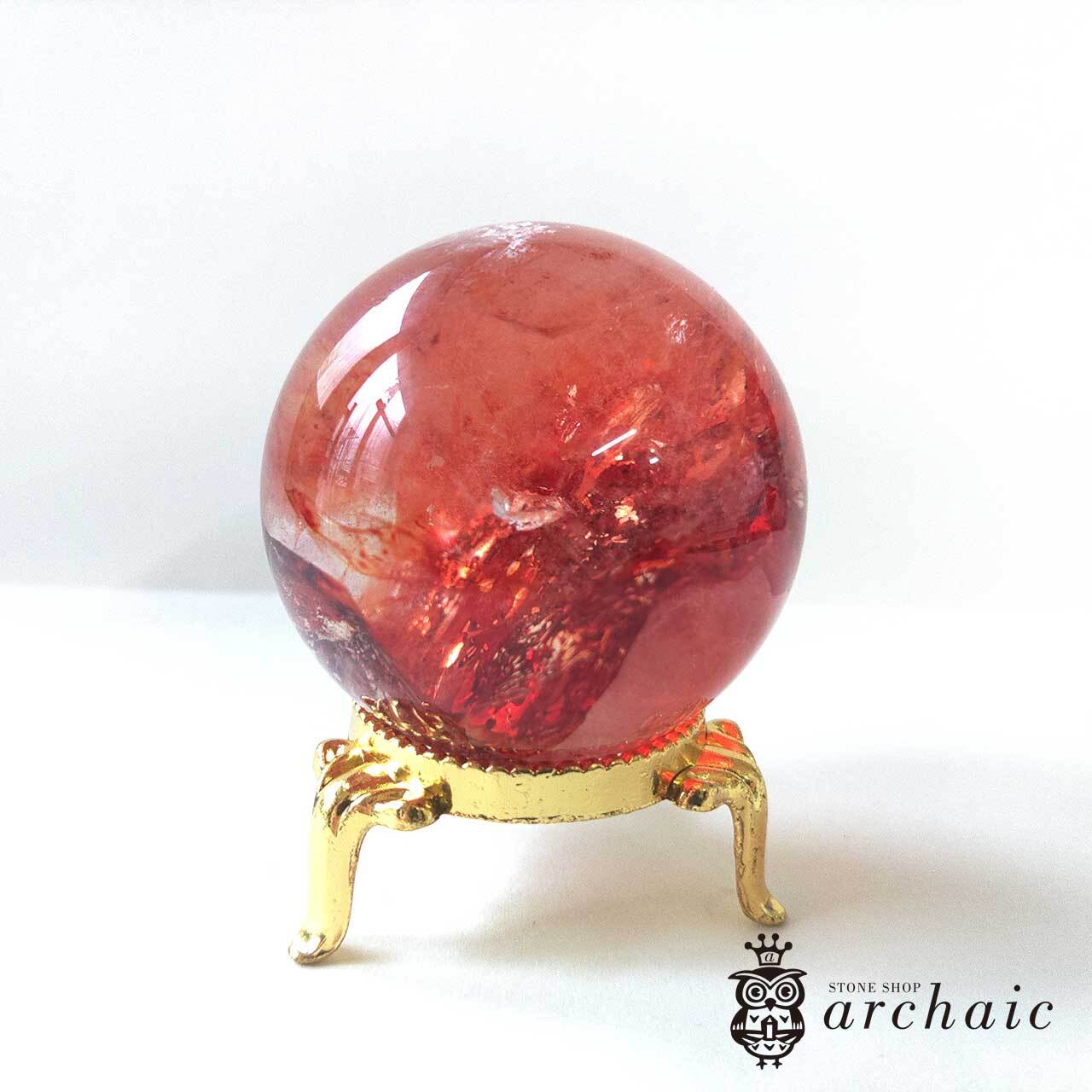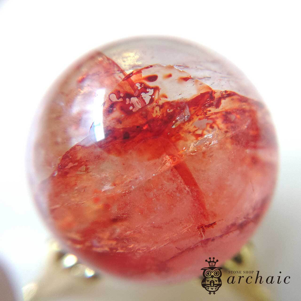 水晶の内に、赤が閉じ込められたオーロラクォーツの丸玉です。