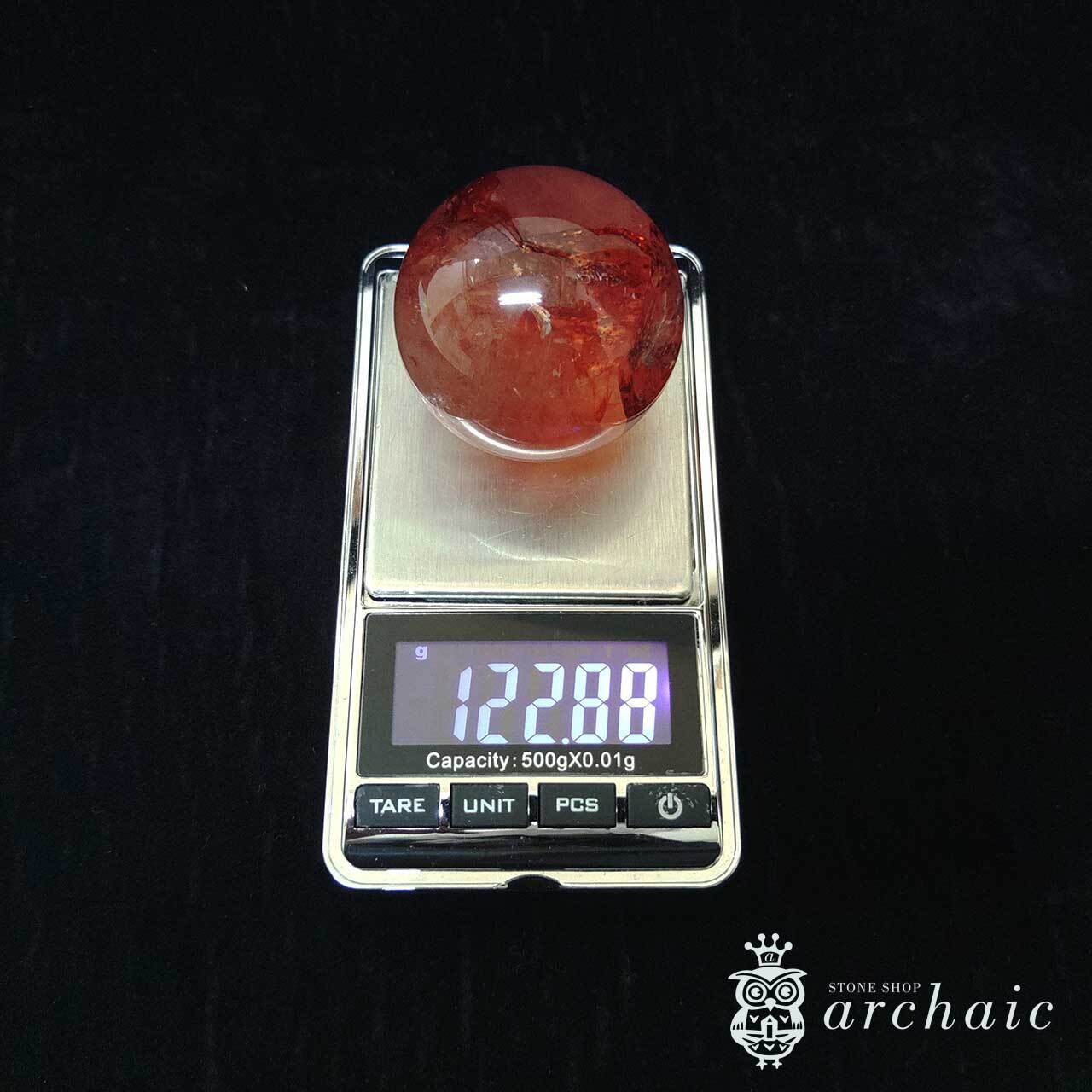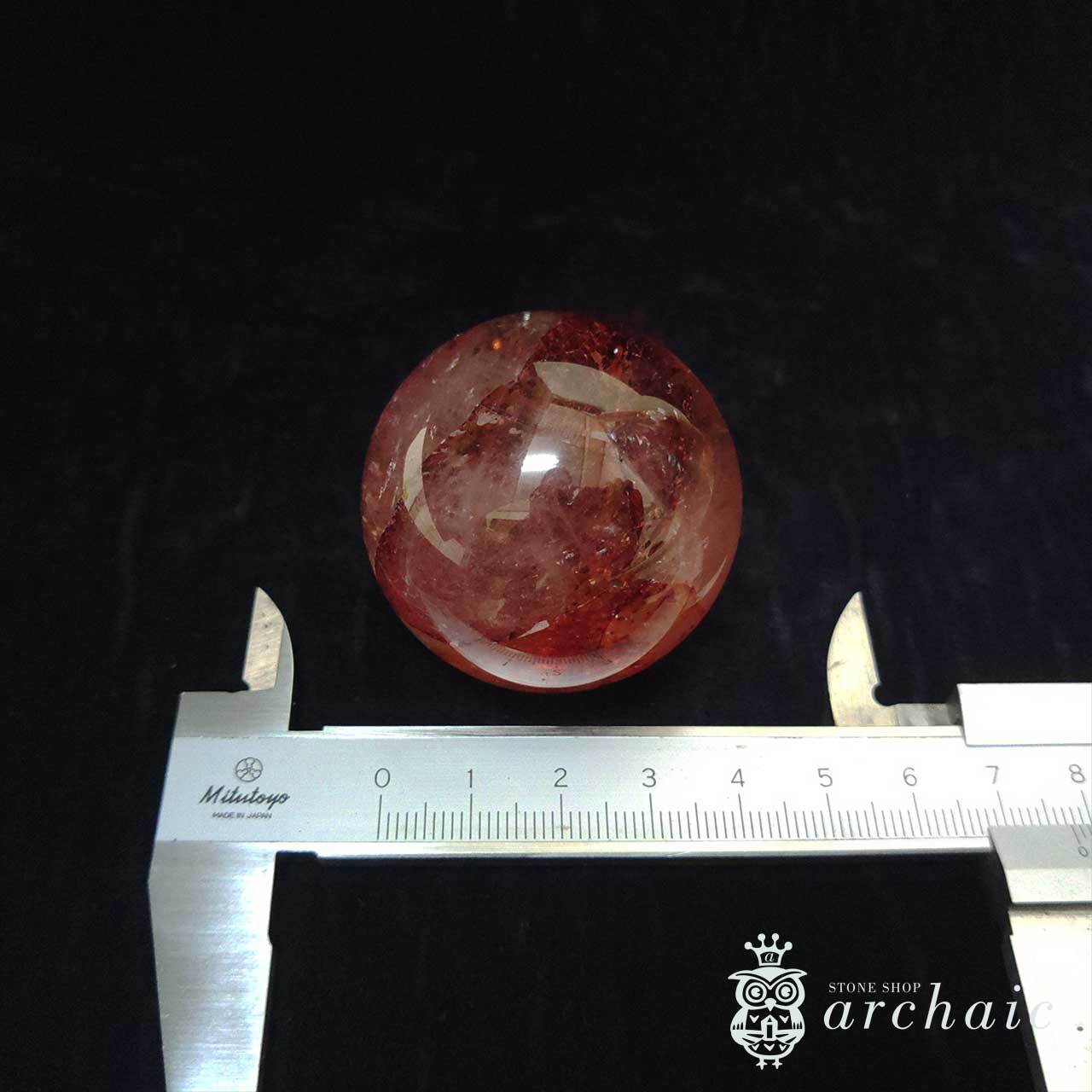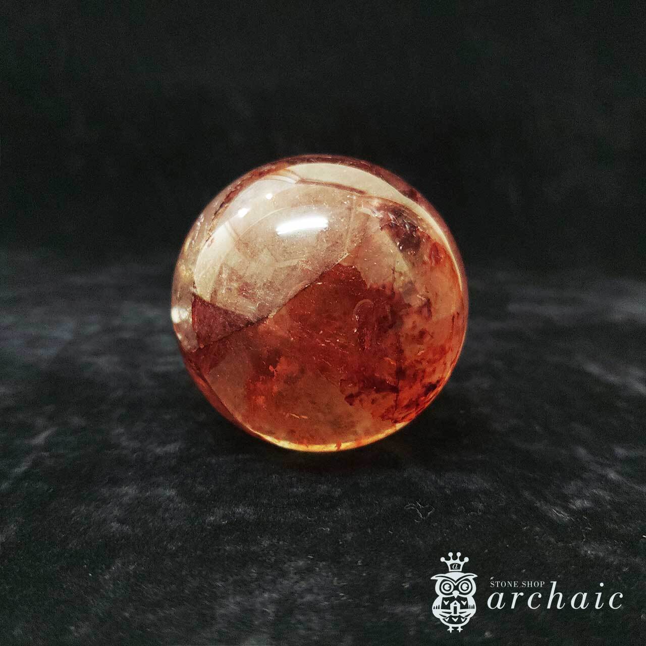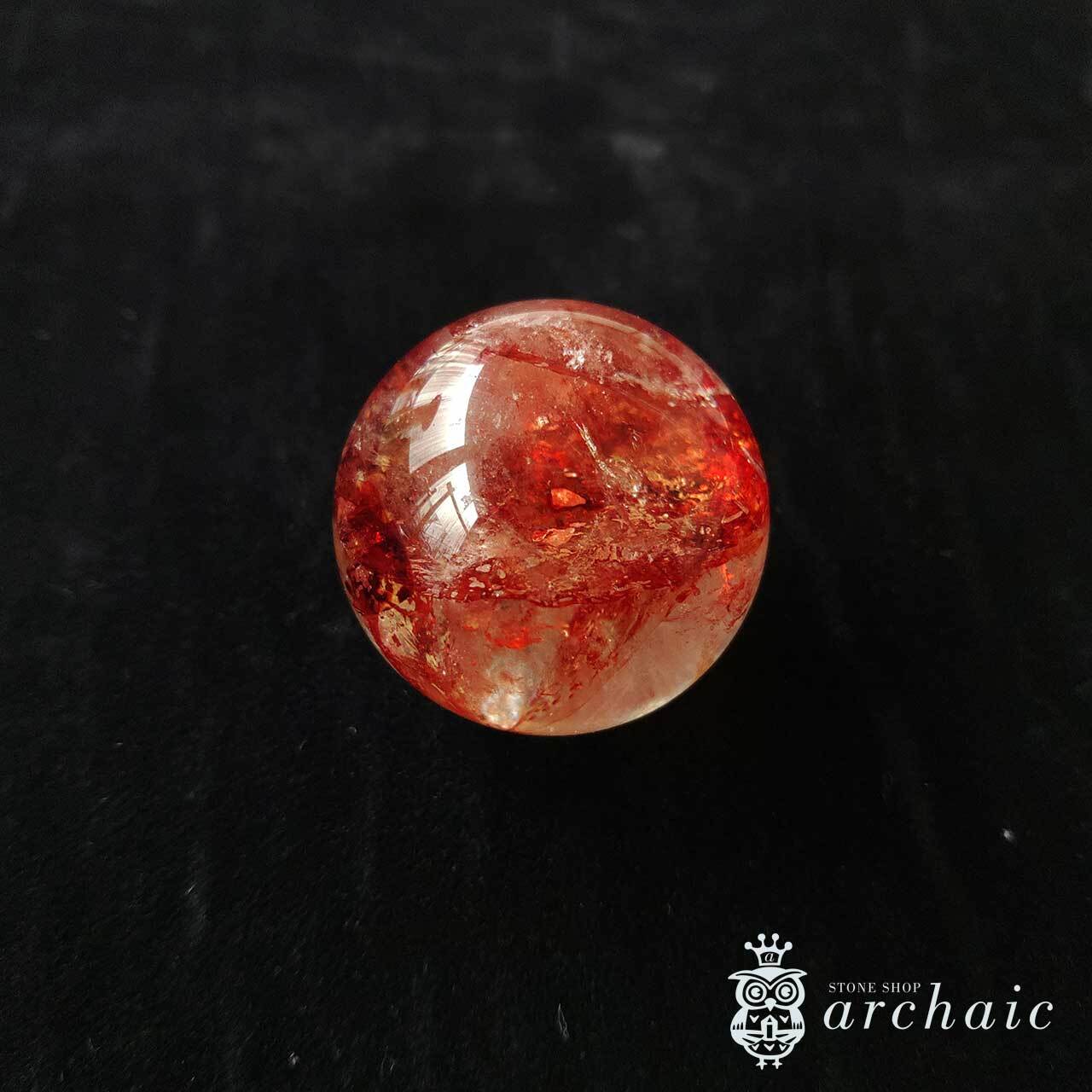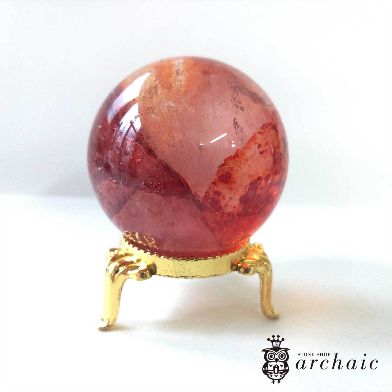 水晶の内に、赤が閉じ込められたオーロラクォーツの丸玉です。