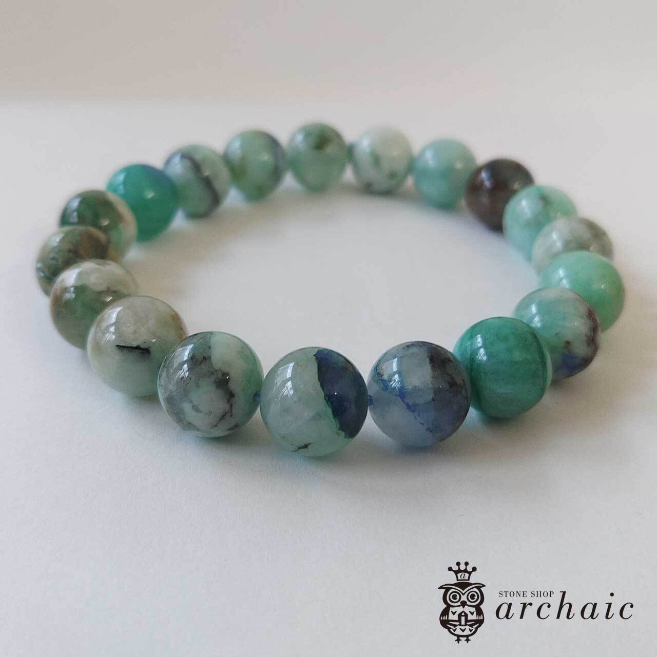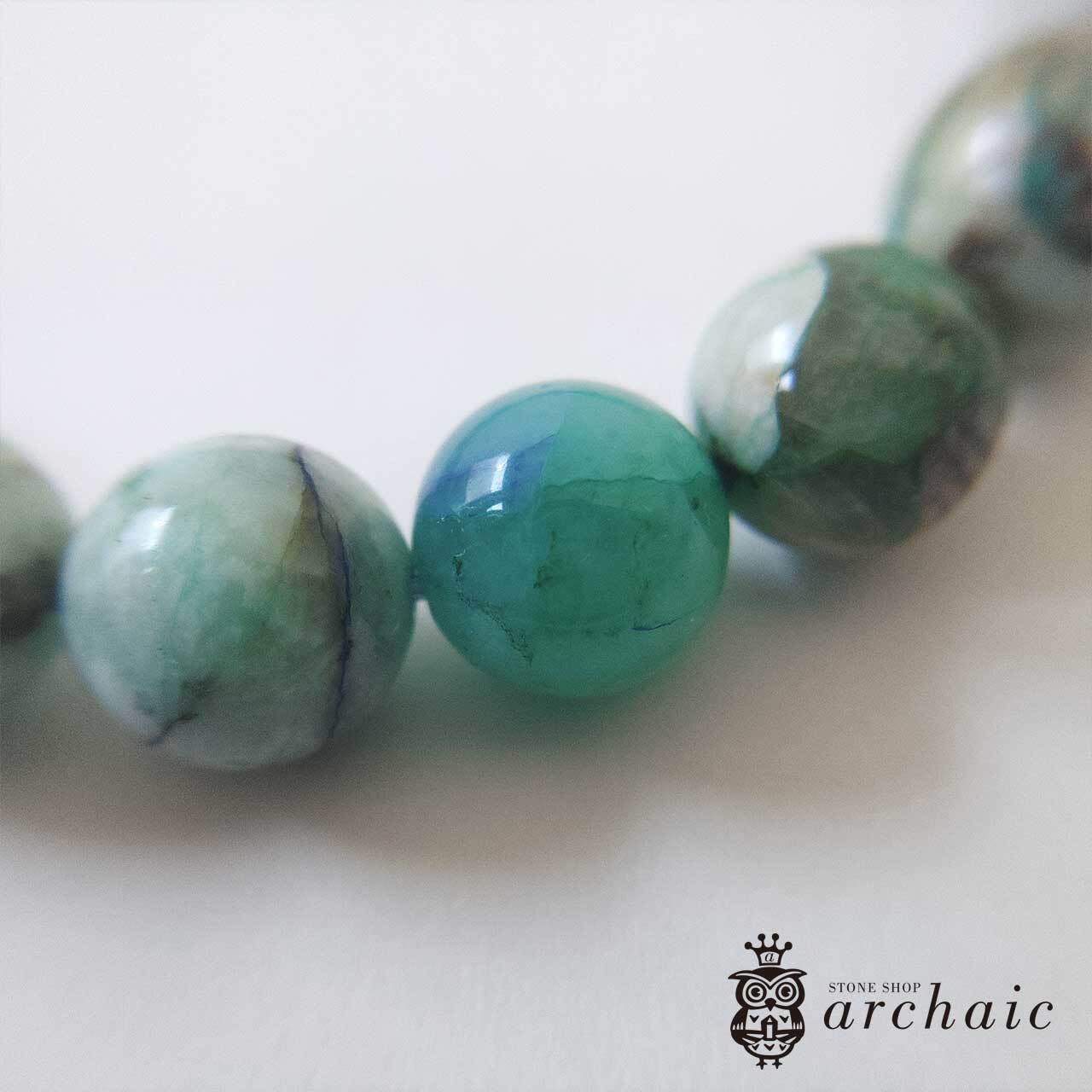 クリソコーラが珪化(石英の成分が長い年月をかけて浸み込む)した「クリソコーラシリカ」のブレスレットです。