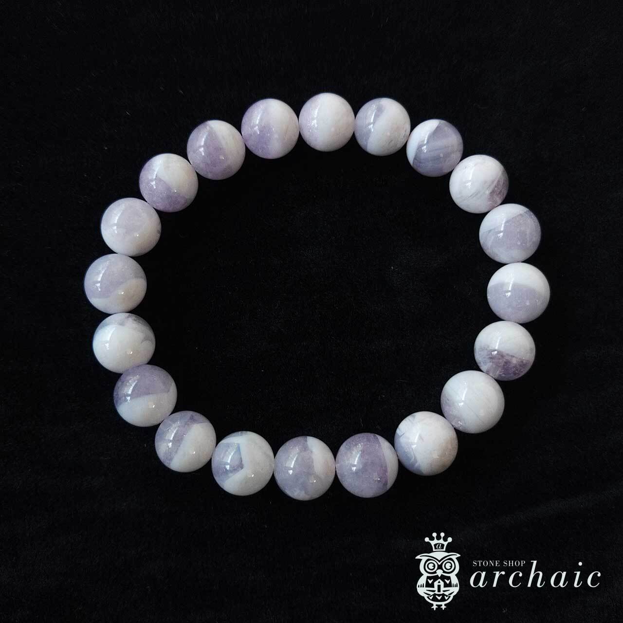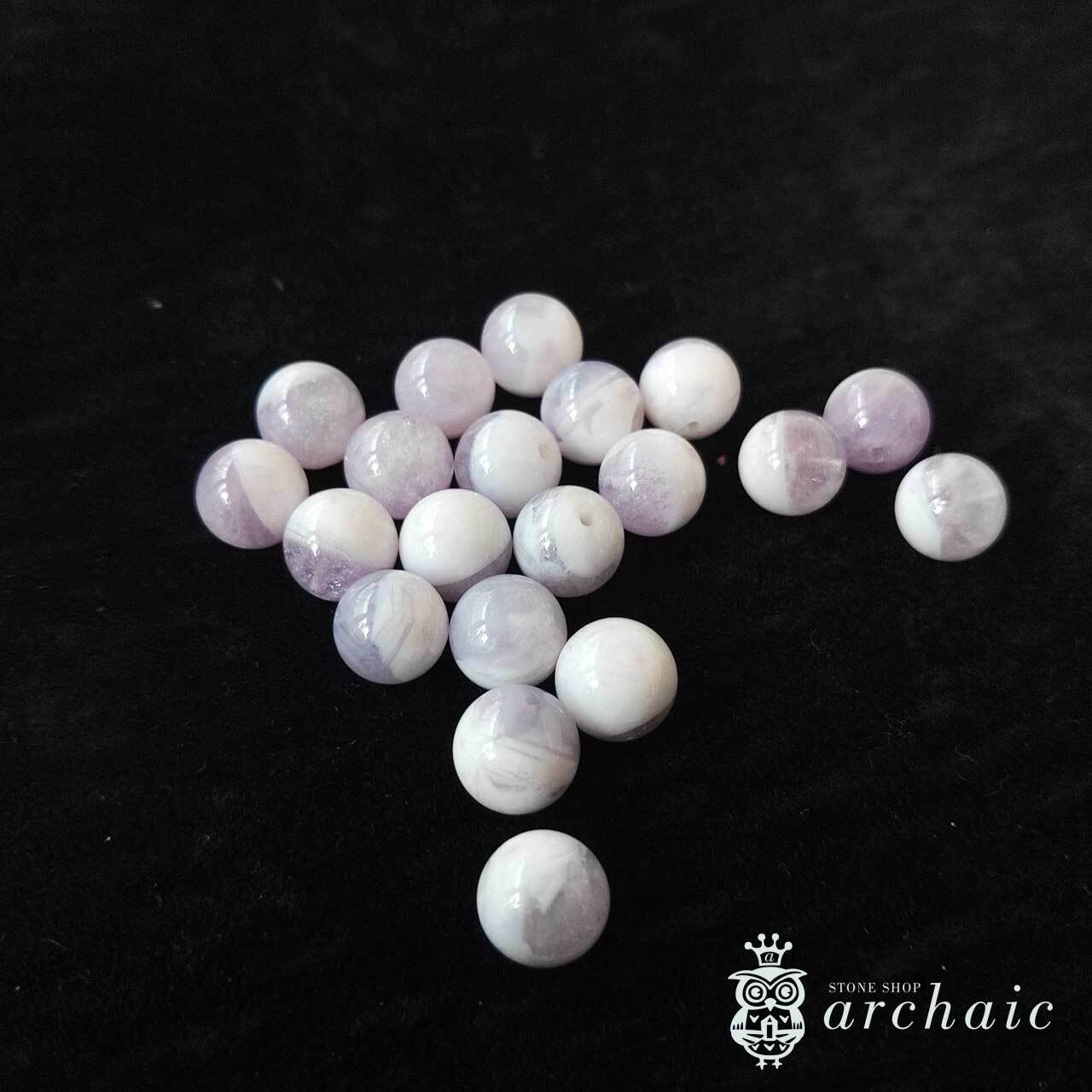 スコロライトはアメジストを加熱処理してできる石で、淡くやさしい乳白色の紫が特徴的です。