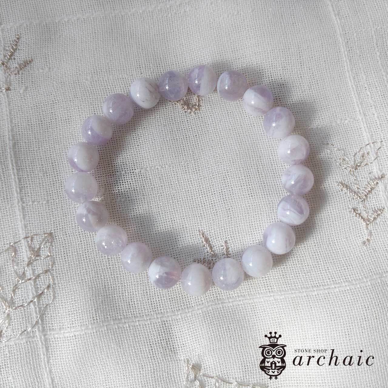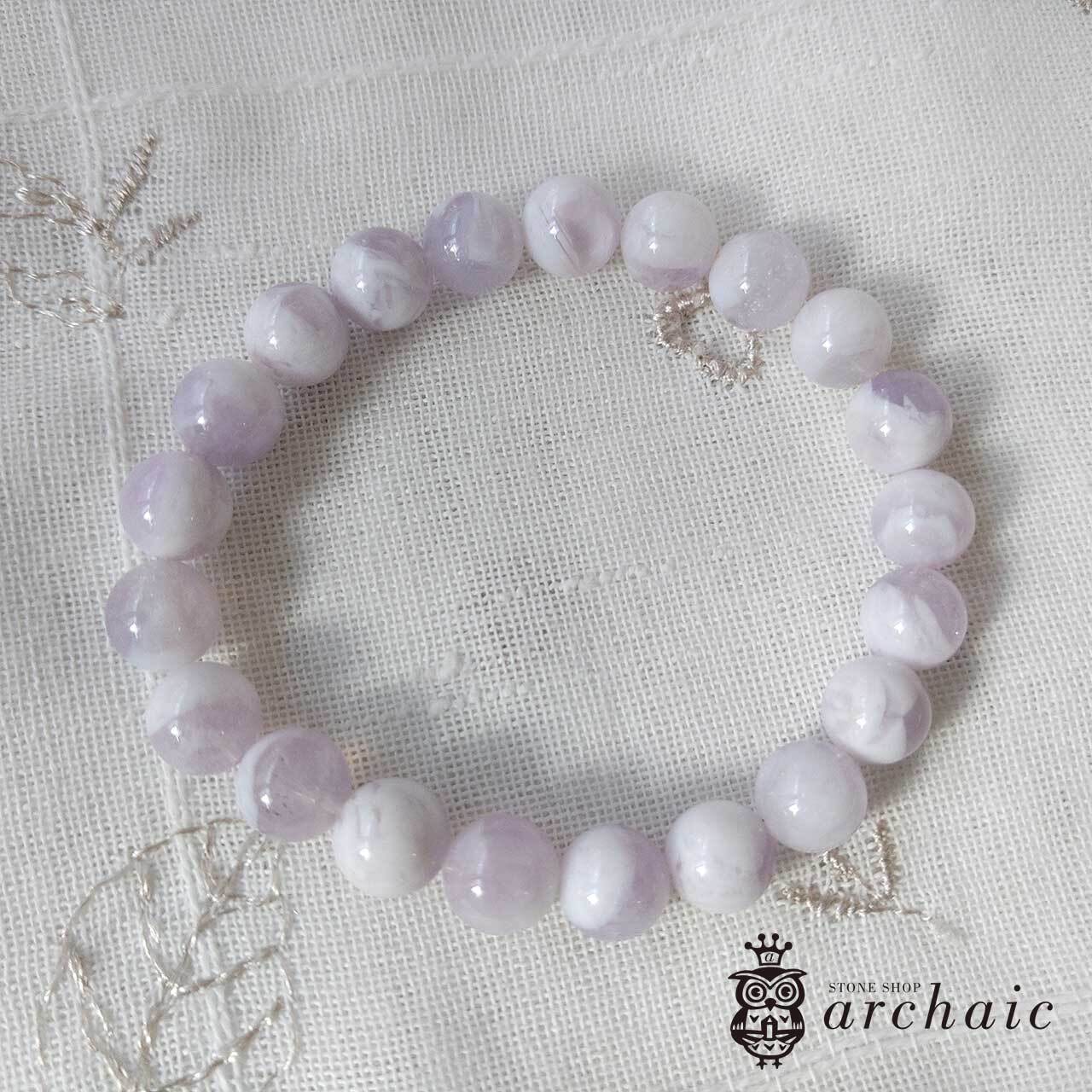 スコロライトはアメジストを加熱処理してできる石で、淡くやさしい乳白色の紫が特徴的です。