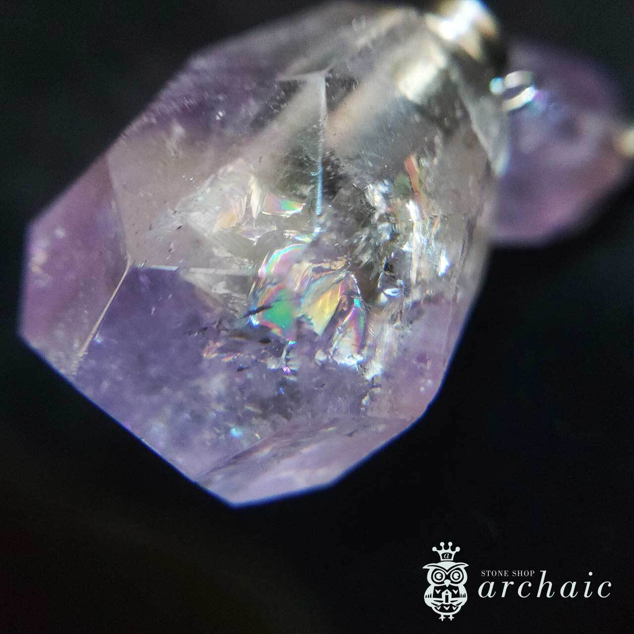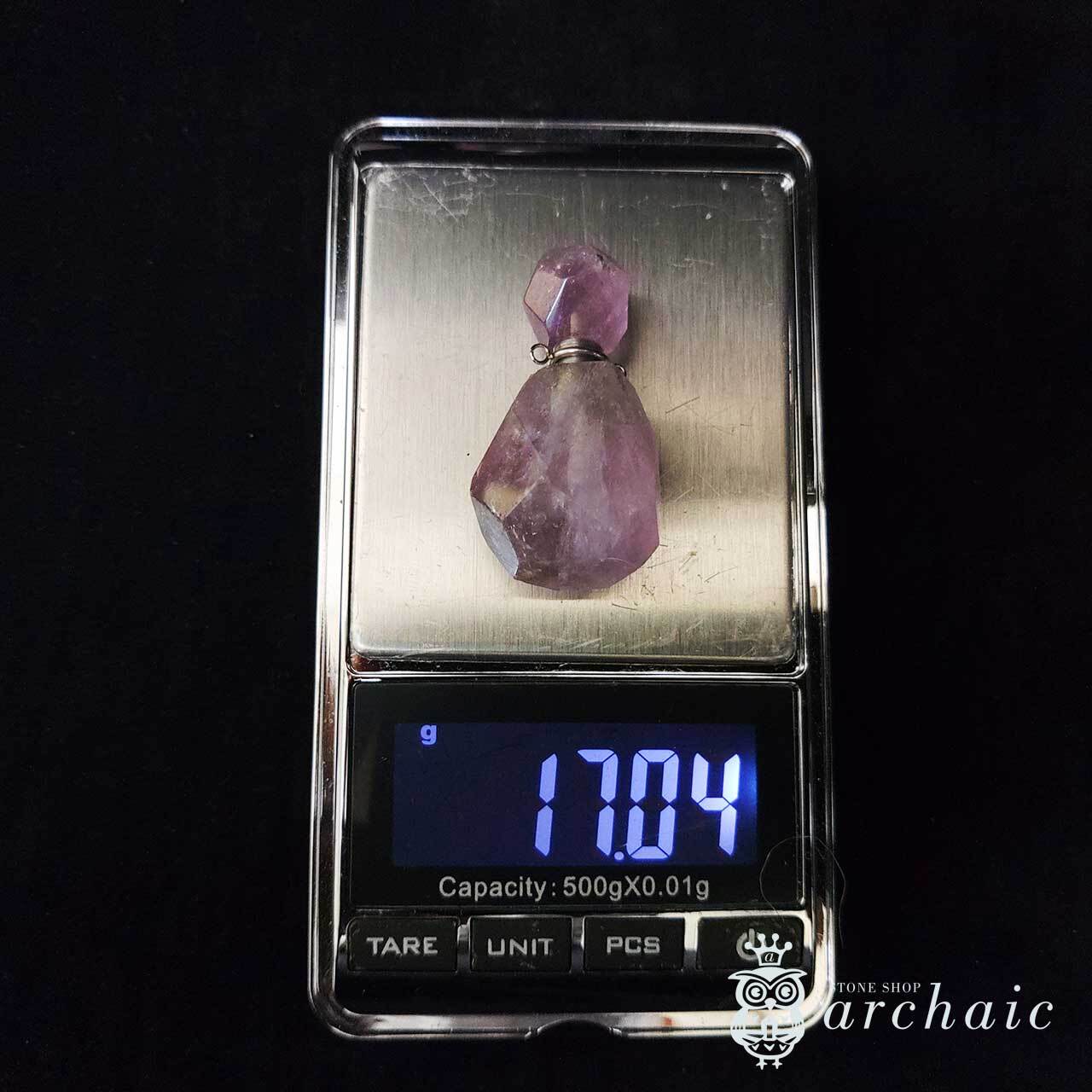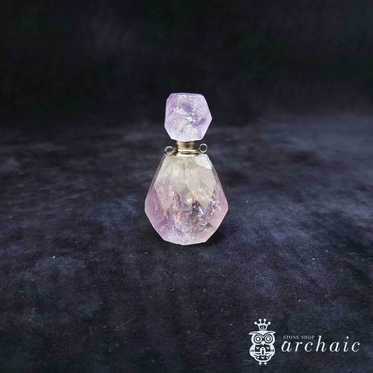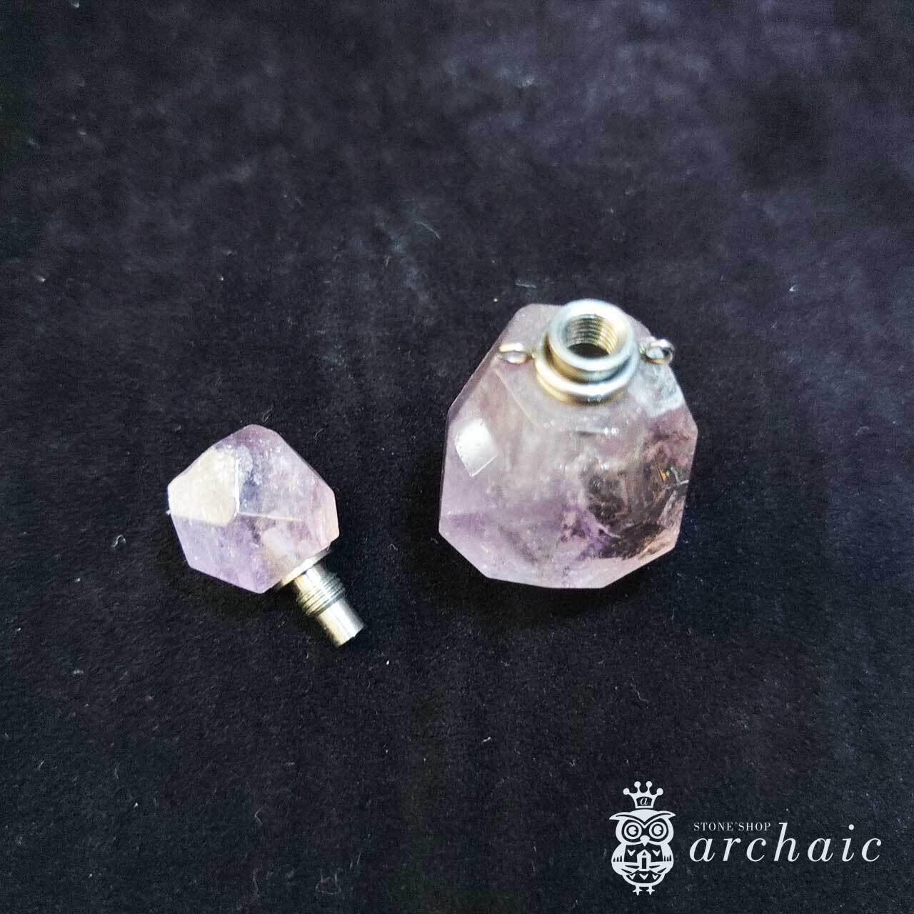 アメジストでできた、原石の風合いを残した香水ボトルです。