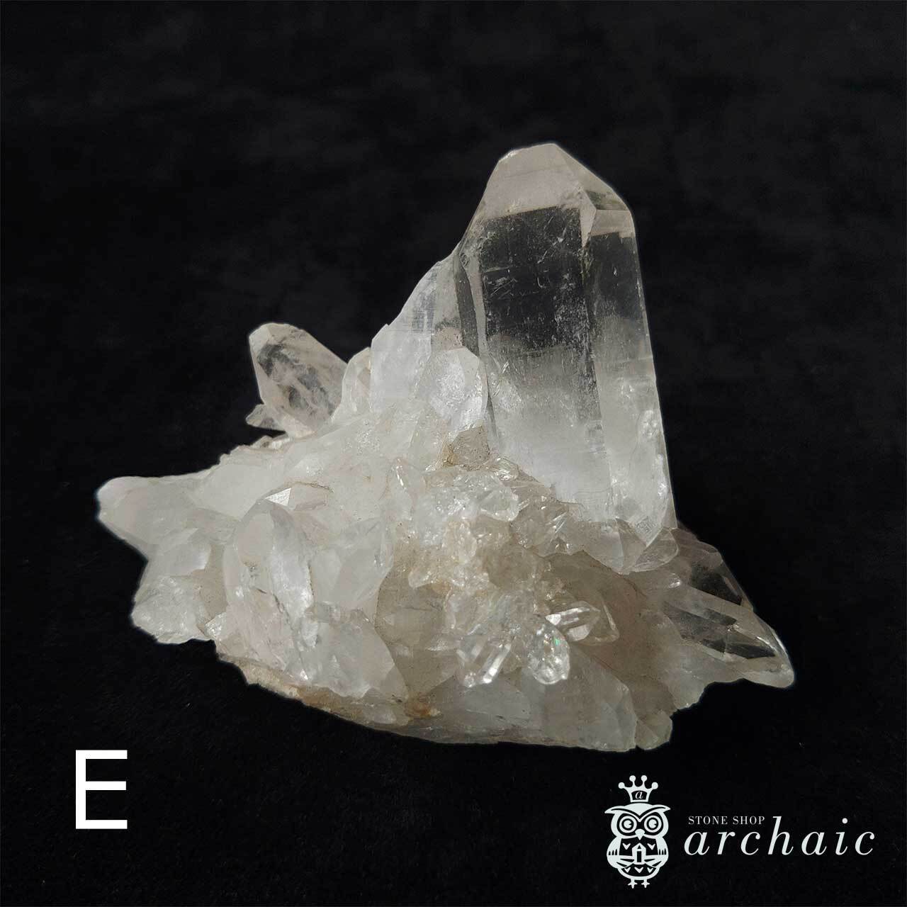 Eタイプ:斜め上に伸びる太い結晶と、その周りにも大小さまざまな結晶がついているキラキラした結晶です。
