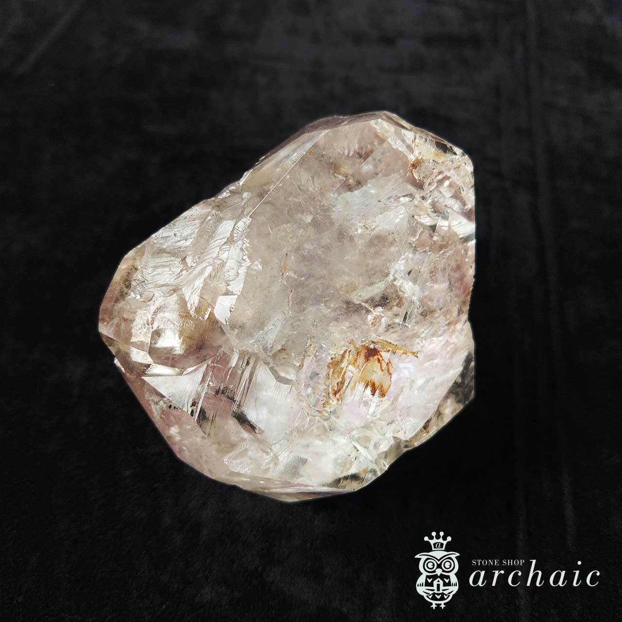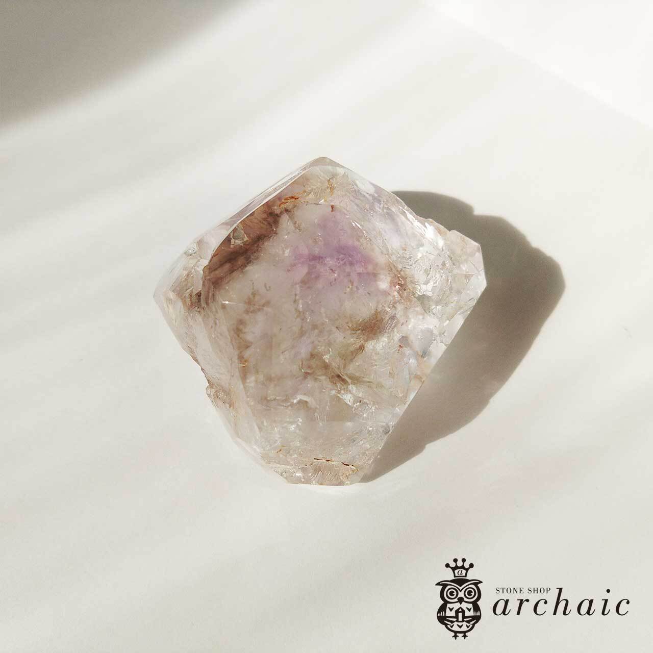 ごつごつとした無骨な形状ですが、透明な水晶にほんのりアメジストが発色していてとてもきれいですよ!